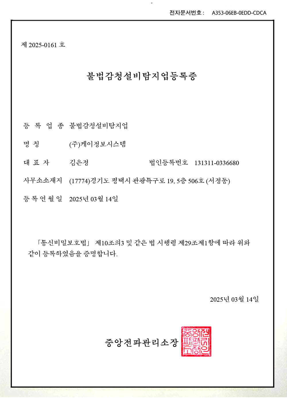 케이정보시스템은 언제나 고객님의 안전한 통신 환경을 위해 최선을 다하겠습니다. 여러분의 소중한 정보가 안전하게 보호될 수 있도록 지속적으로 노력하겠습니다.